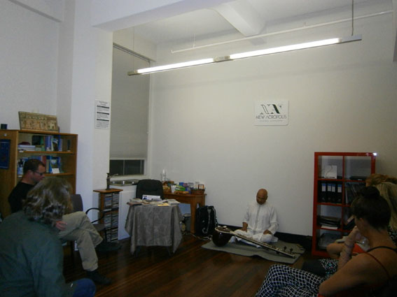 musical demonstrations on the sitar and gave a talk on the underlying philosophy of sacred