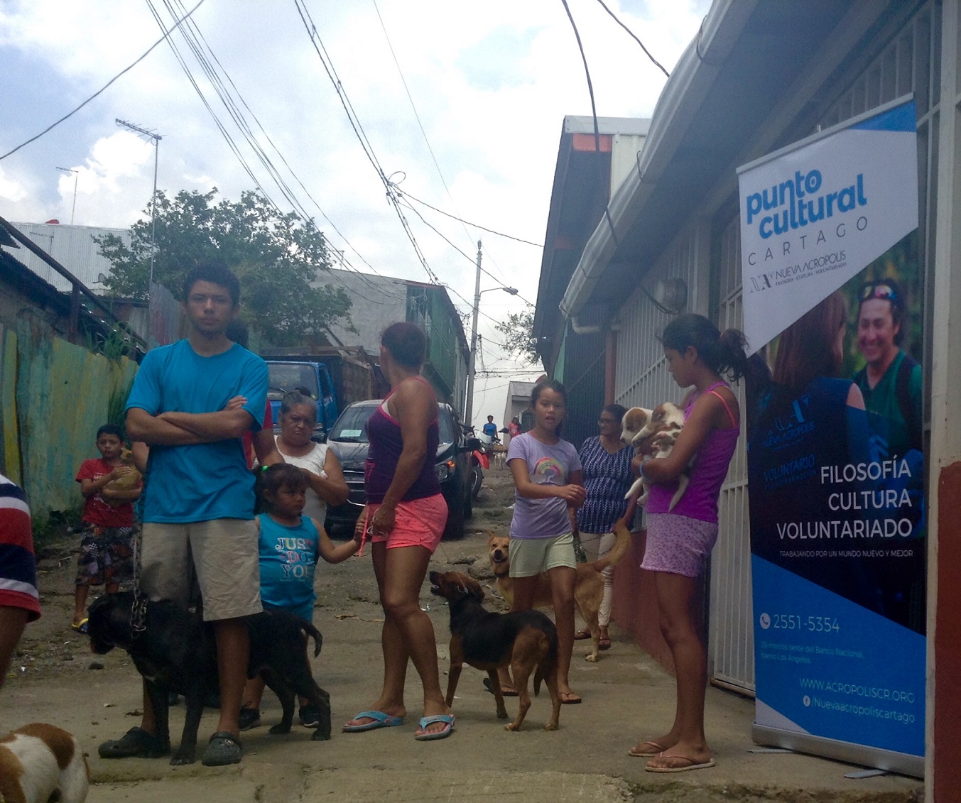 In the company of residents of La Carpio and of the capital, volunteers from New Acropolis participated in Community Animal Health Day. Around 80 dogs and cats in the area were vaccinated in this campaign, which also brightened and colored the neighborhood with two murals in commemoration of this cause.