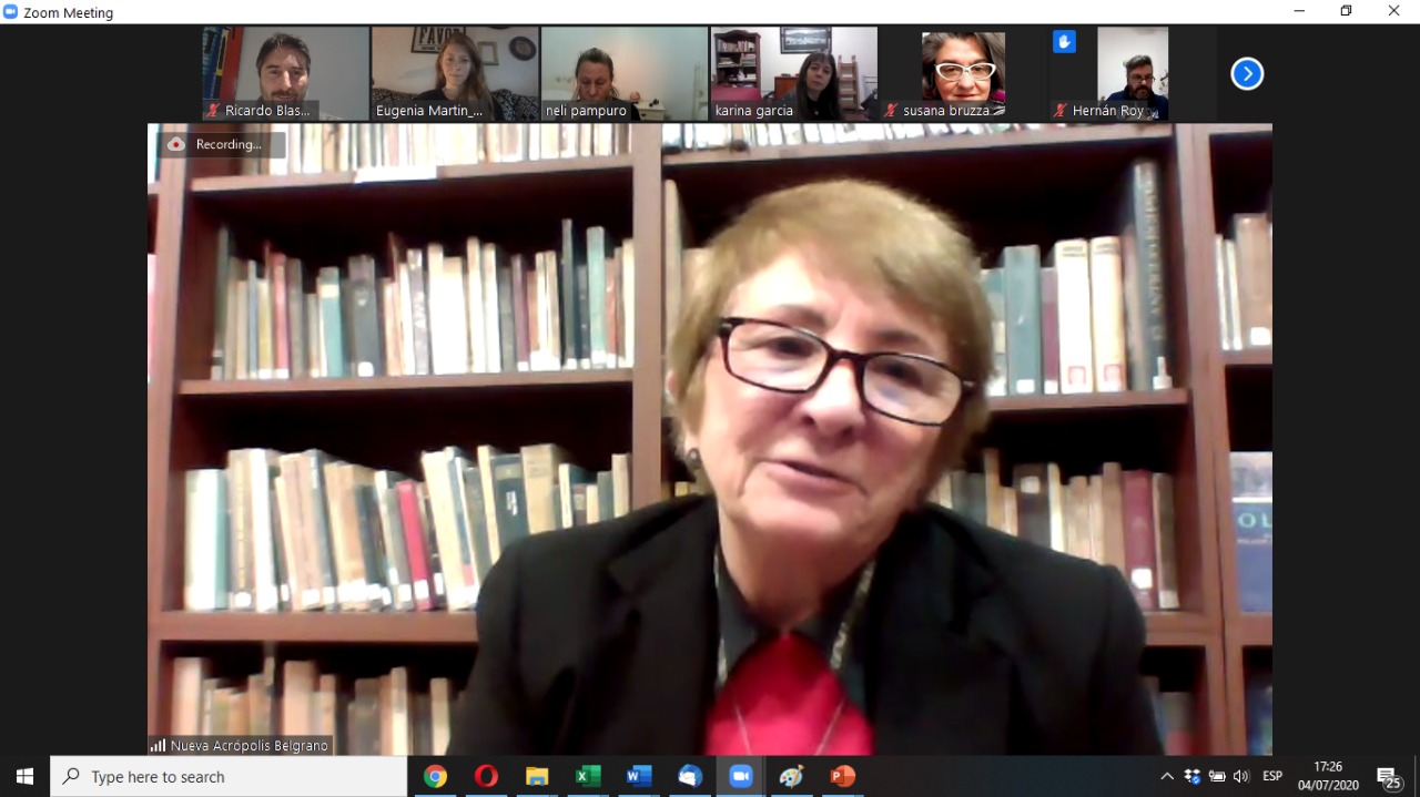 Prof. Victoria Calle, director of New Acropolis Argentina South spoke about the teachings of Plato, including the immortality of the soul; Platonic ideas about the world of archetypal reality; pure archetypal ideas and their reflection in the manifested sensitive world; the reality of the intelligible world and the illusion of the sensitive world; the human being as microcosm; The perfectible human soul and the immortal soul of divine nature, and the myths of Plato and philosophy as a search for answers about ourselves, the world and the divine.