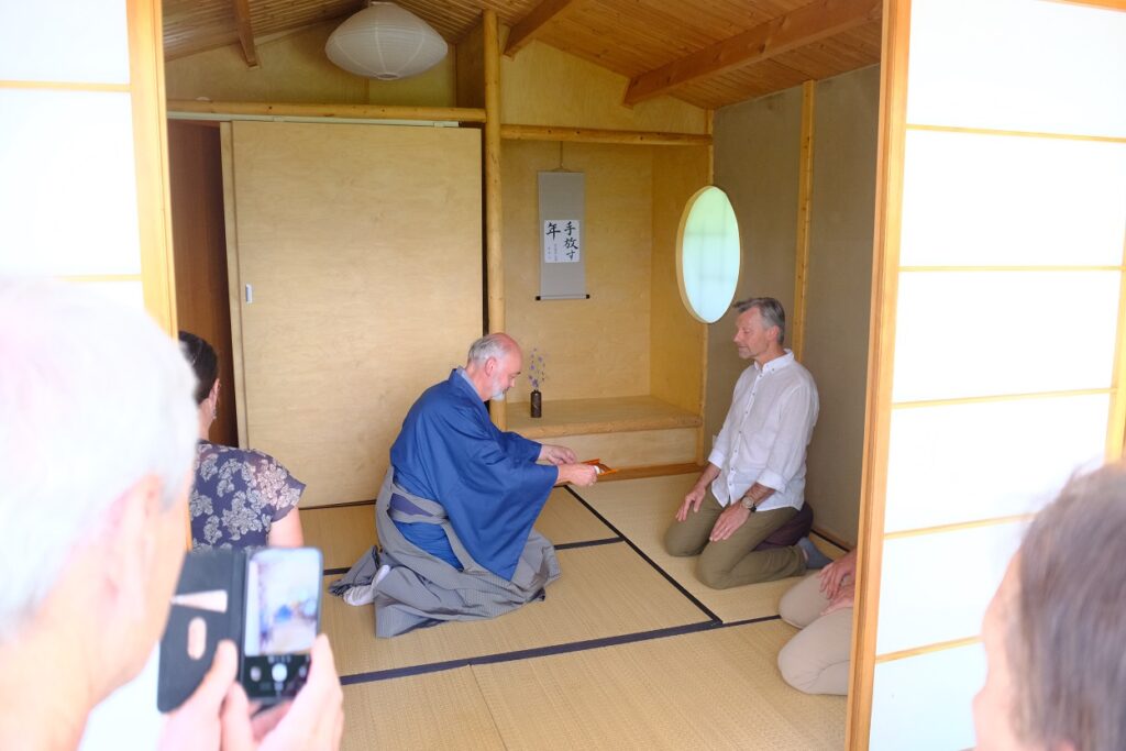 The ceremony was a special highlight: with the utmost precision, mindfulness and a deep spiritual focus, tea master Takamatsu prepared matcha tea for three participants, who sat down on tatami mats in the traditional style. The entire design – from the choice of tea bowls to the floral decorations and the calligraphic design of the tokonoma (the central niche in the teahouse) – was coordinated with this year’s theme.