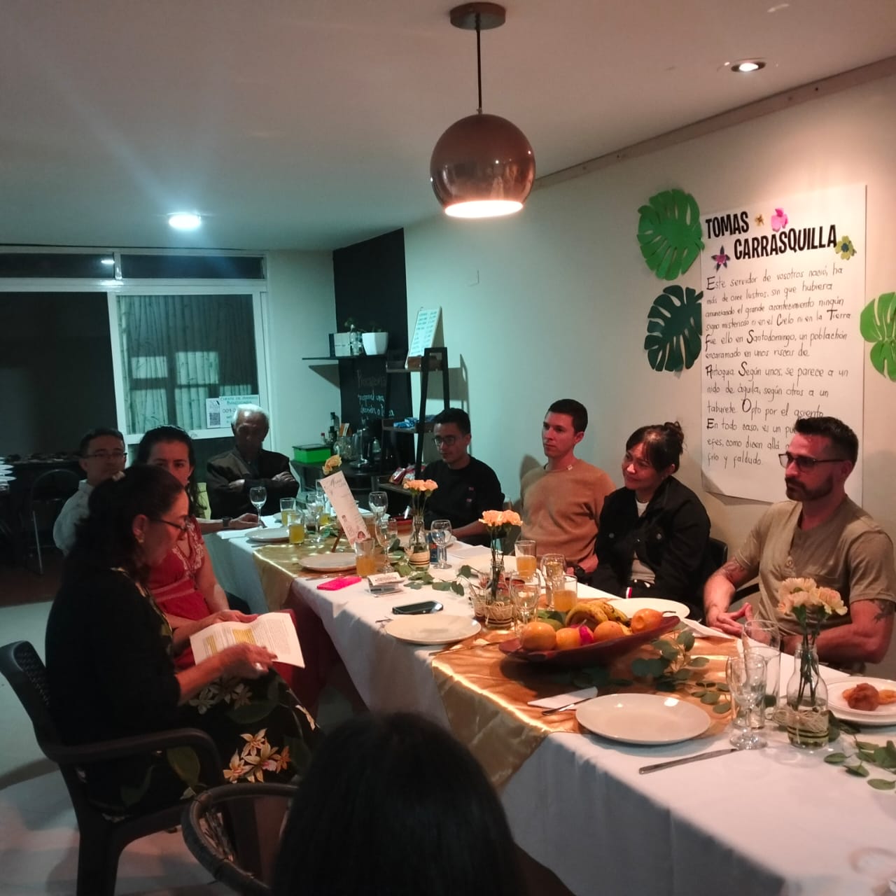 This experience was the perfect prelude to our Literary Banquet, held at our headquarters a few days after the visit. There, through words and dialogue, we immersed ourselves in some of his most representative works, such as La Marquesa de Yolombó and A la diestra de Dios Padre. Through shared readings and reflections, we discovered a Carrasquilla who did not write from a distance, but from a place of closeness to his land and his people. His characters, full of humanity and mischief, made us laugh, think and recognise ourselves in traditions that, although ancient, continue to beat in our cultural identity.