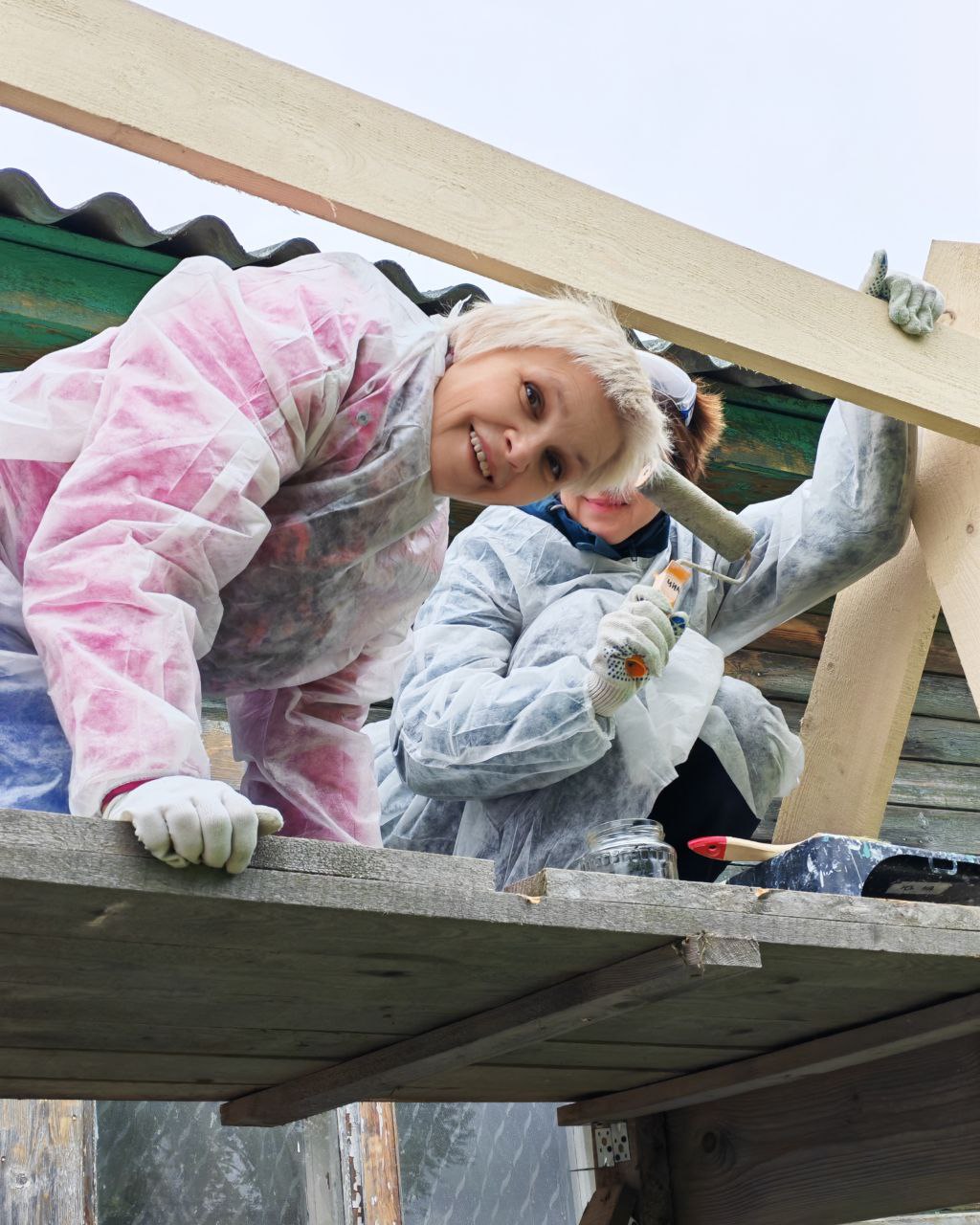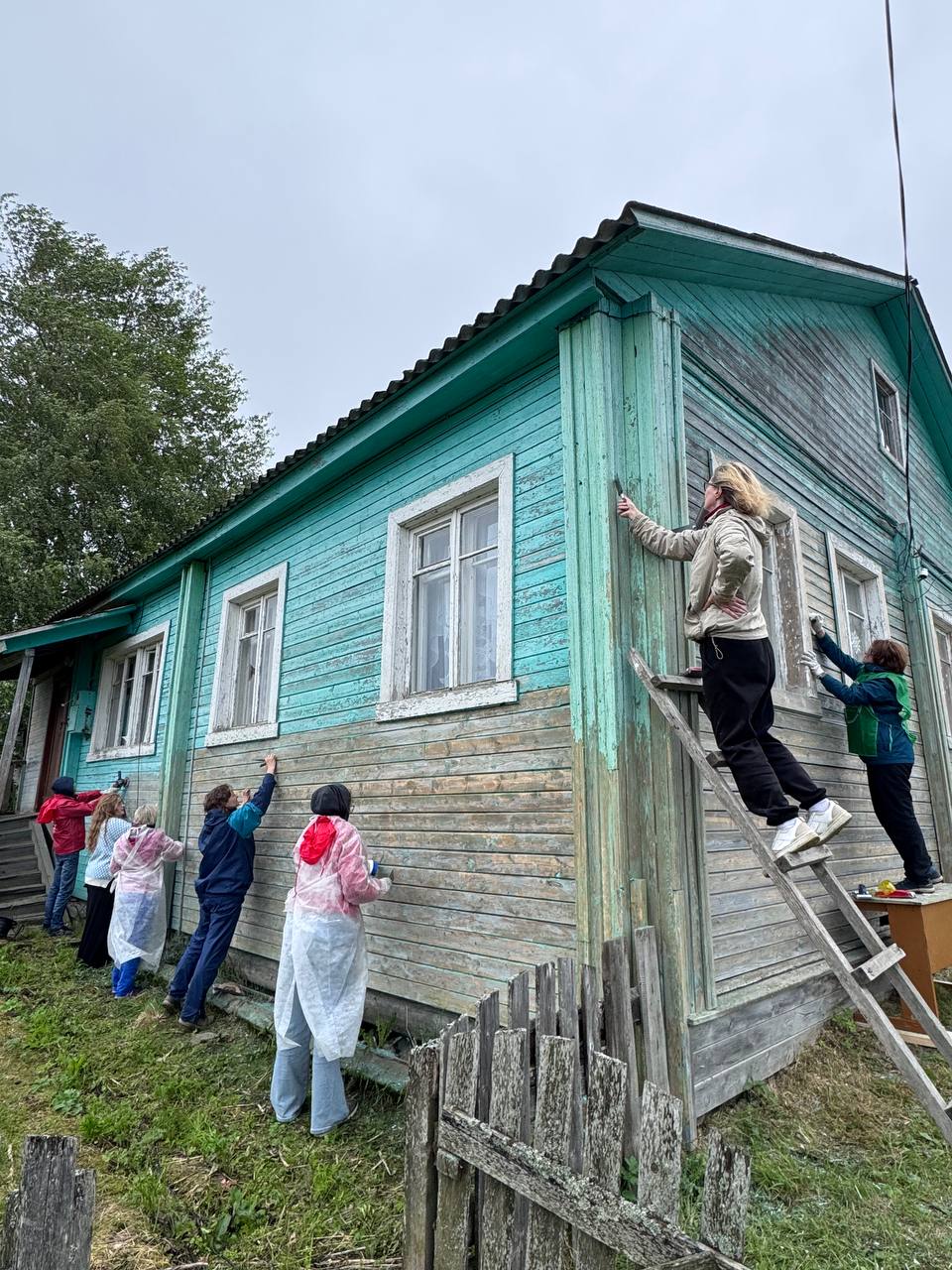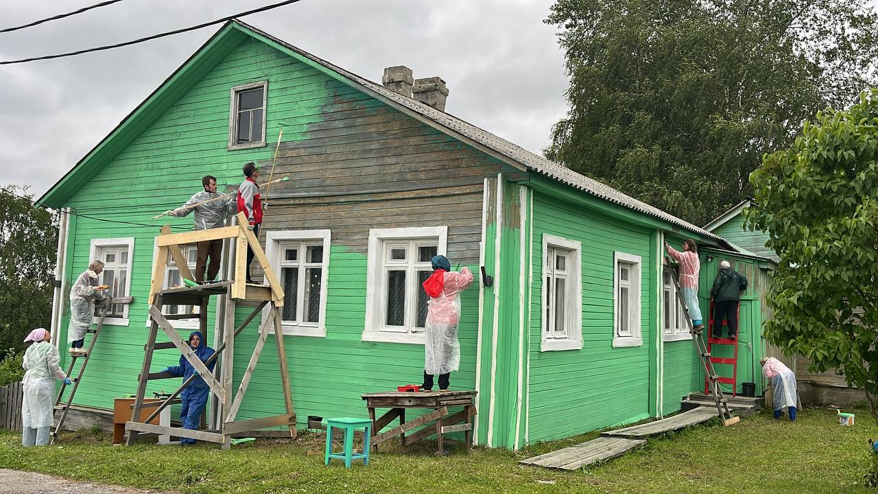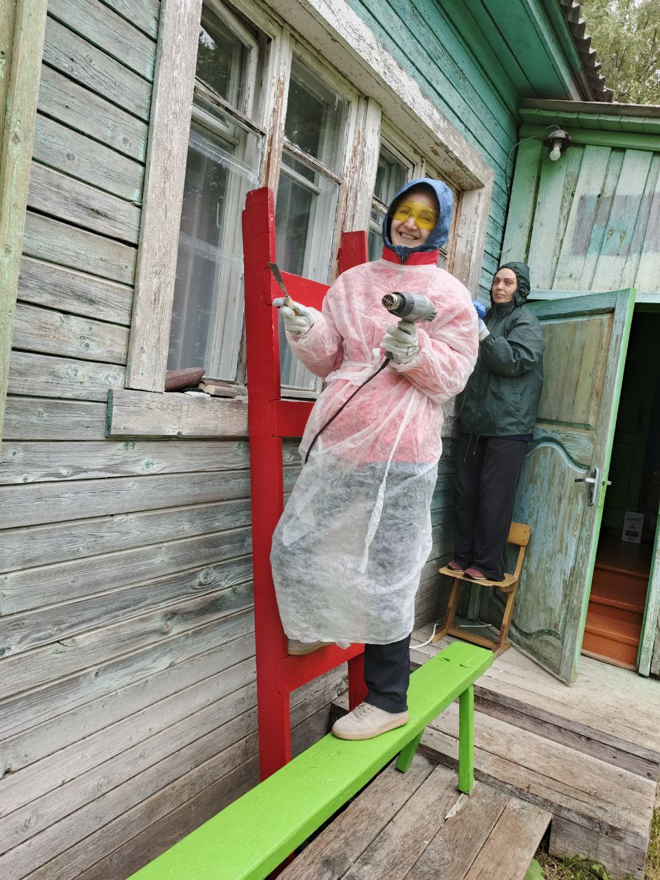 Five days, ten Acropolitans have been cleaning the walls and window frames from several layers of old paint, sanded them, covered them with a primer and even managed to paint part of the facade. Two weeks after that, the villagers completed their work.