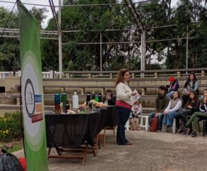 Para cerrar la jornada, la bióloga y amiga de la escuela de filosofía, Luisina Battistón, ofreció una degustación de alimentos elaborados con especies nativas de la región central de Argentina: arropes, tés, infusiones torradas, budines y muffins de algarrobo, chañar y mistol, entre otras delicias.