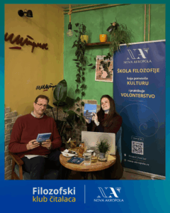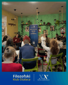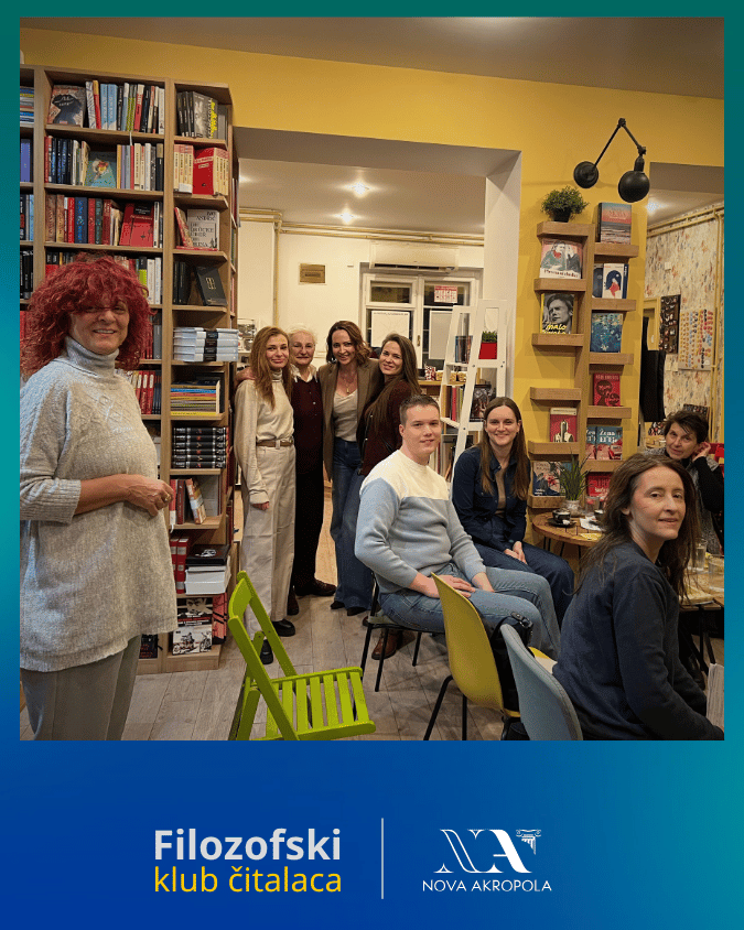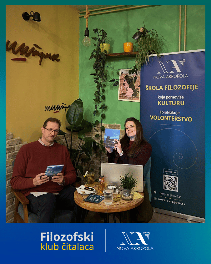 In the pleasant atmosphere of a bookstore cafe in Belgrade, participants discussed the great questions the book touches on—freedom, responsibility, and the meaning of life.