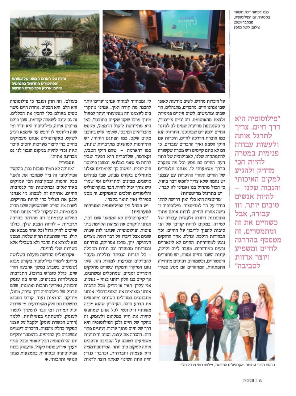 New Acropolis Israel was recently featured in Globes, one of Israel’s leading newspapers, in an article by Orly Genossar titled “Making Philosophy Accessible.” The feature offers a vibrant perspective on the timeless search for wisdom through an engaging interview with Ruti Mandil-Halabi, a dedicated teacher and volunteer at the New Acropolis school of philosophy for 30 years.