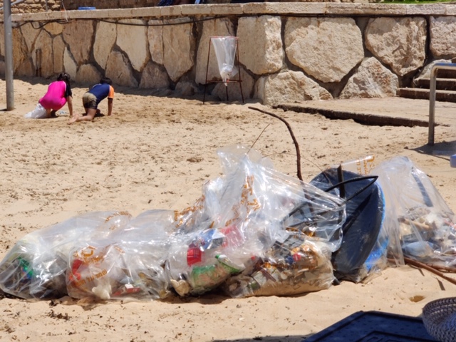 Encuentro de un grupo de voluntarios de Nueva Acrópolis en la playa de Jaffa para una jornada de limpieza. Antes de empezar, hubo una pequeña reunión con el encargado que habló brevemente sobre la ecología, y al término de la limpieza hubo un coloquio sobre filosofía.