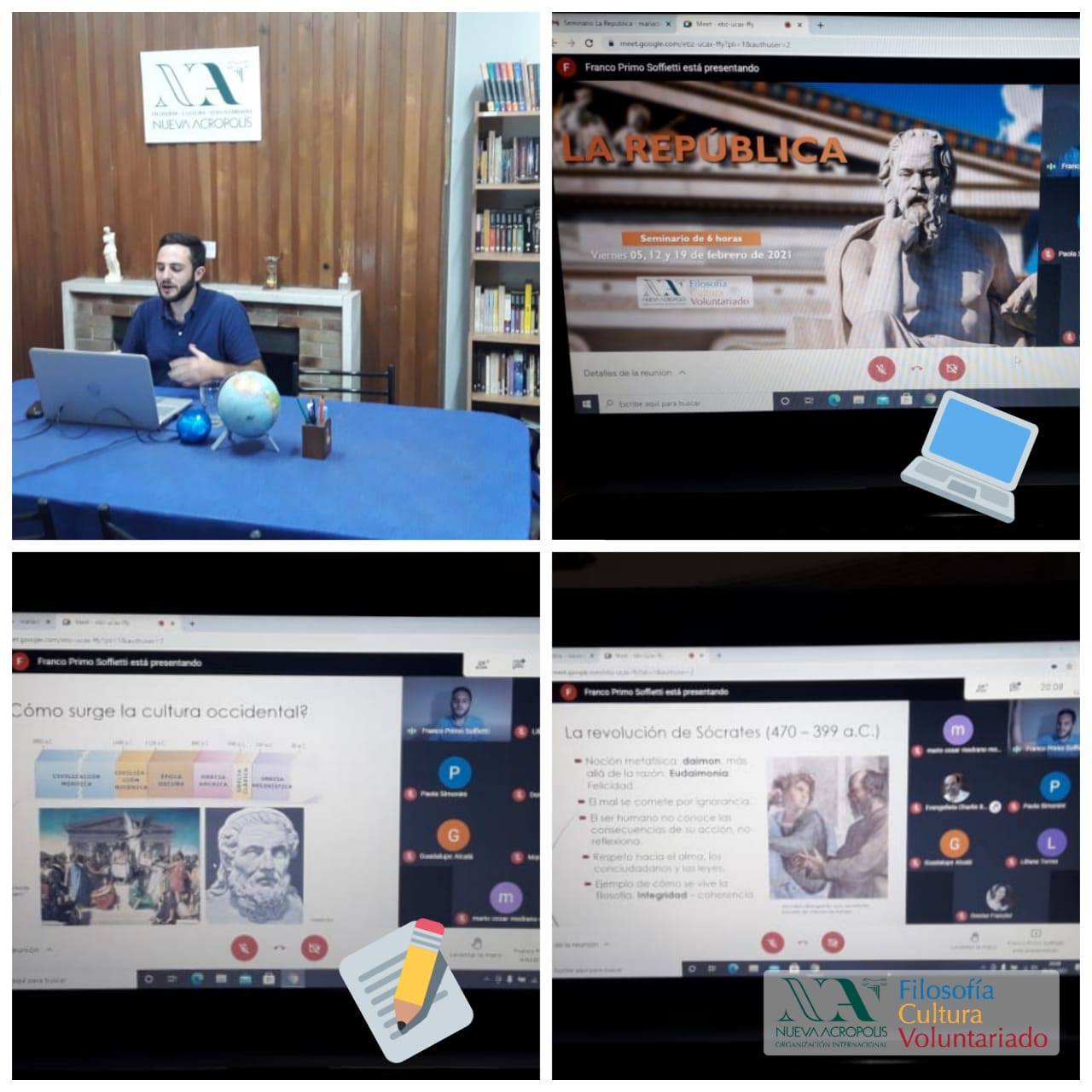 El viernes 19 de febrero finalizamos con el seminario: “La República, en búsqueda de la ciudad ideal” basado en el diálogo de Platón, dictada en 3 encuentros virtuales.