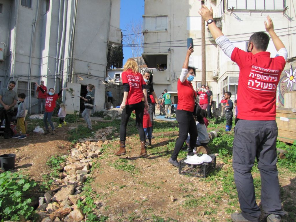 Un grupo de voluntarios de la filial Haifa, trabajaron en un jardín comunitario del vecindario. Junto con los vecinos, se limpió y cultivó el jardín, se pintaron las jardineras y plantaron flores. La actividad permitió una cordial colaboración de todos juntos, crear una conexión humana simple, sin críticas ni juicios.