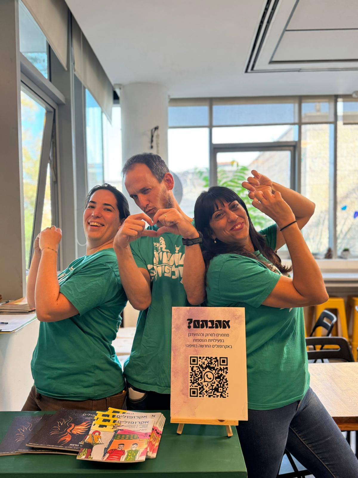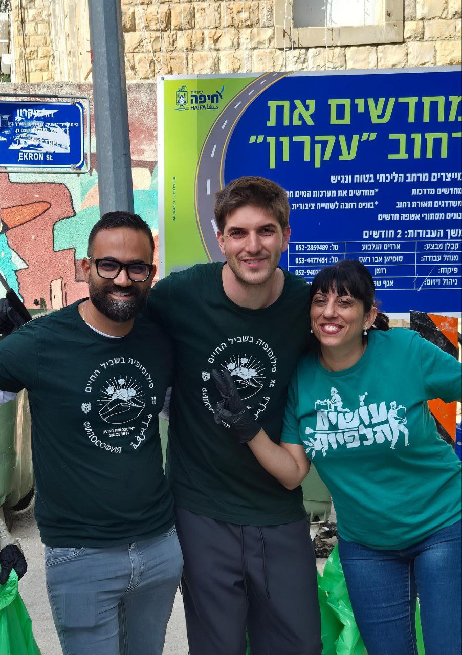 En Haifa, la actividad comenzó con una reflexión filosófica sobre la esencia del voluntariado, explorando la pregunta: ¿qué significa el voluntariado para mí y qué es más difícil: dar o recibir? A esto le siguió la limpieza de las calles que rodean el centro, un mercado ecológico de productos sostenibles y una sesión de improvisación musical. En Menahamia, voluntarios renovaron el patio de un centro juvenil local, plantando un huerto y construyendo un nuevo escenario de madera y una zona de fogata para ofrecer un espacio vibrante para reuniones y presentaciones juveniles.