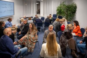 Uno de los momentos más destacados de la velada fueron las sesiones de diálogo filosófico: conversaciones breves y animadas, preguntas sorprendentes, muchas risas y encuentros genuinos. Esto demostró lo dinámica y accesible que puede ser la filosofía cuando uno simplemente se anima a explorarla.