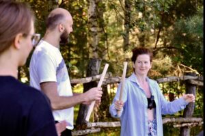 Actividades y momentos especiales: juegos filosóficos, yoga, diálogos profundos, improvisaciones teatrales, caminatas en silencio, rituales con fuego, música, pintura colectiva y símbolos vivos.