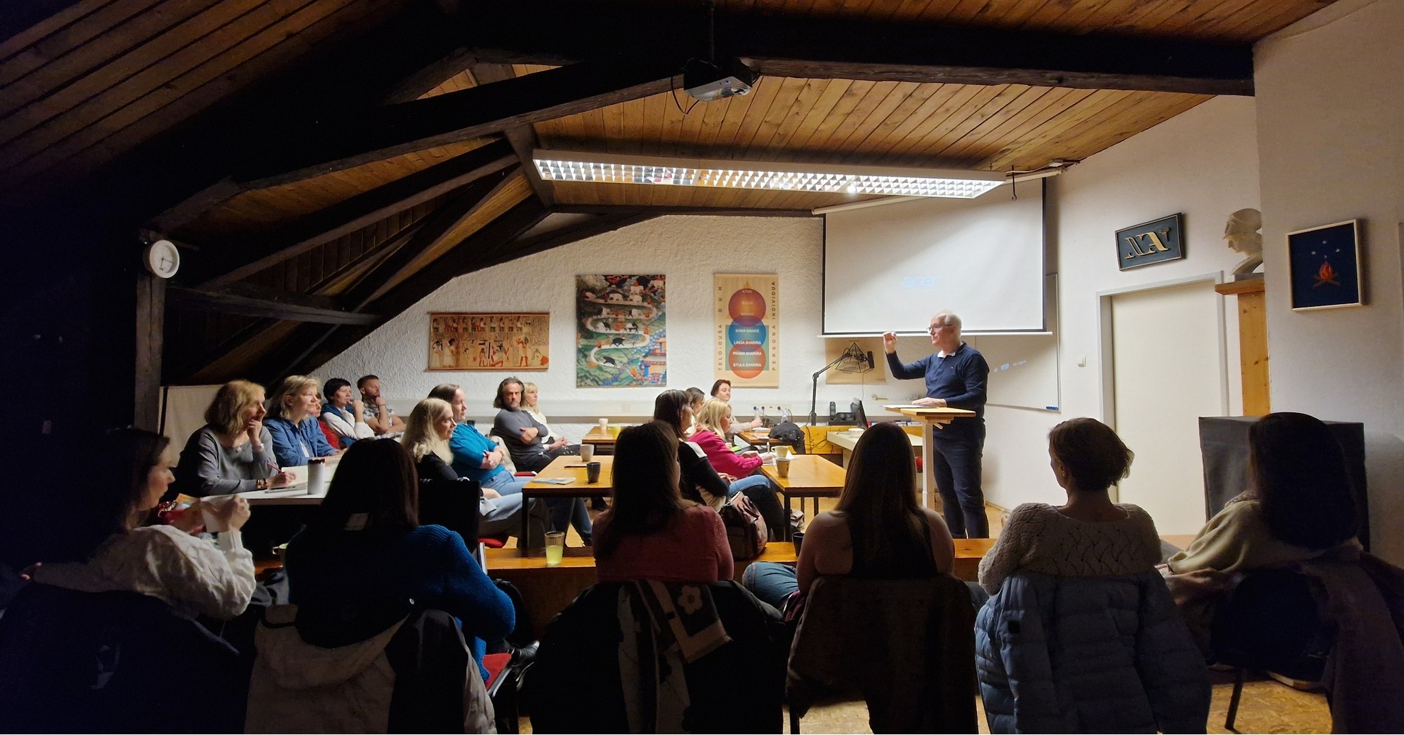 A través de ejemplos del arte, el simbolismo y la vida cotidiana, exploramos cómo el mandala puede guiarnos cuando nos sentimos perdidos, dispersos o inseguros, como un faro en un mar tempestuoso. El evento también incluyó un sencillo ejercicio práctico para crear un mandala personal, lo que permitió a los participantes escuchar con mayor atención las capas más profundas de su psique.