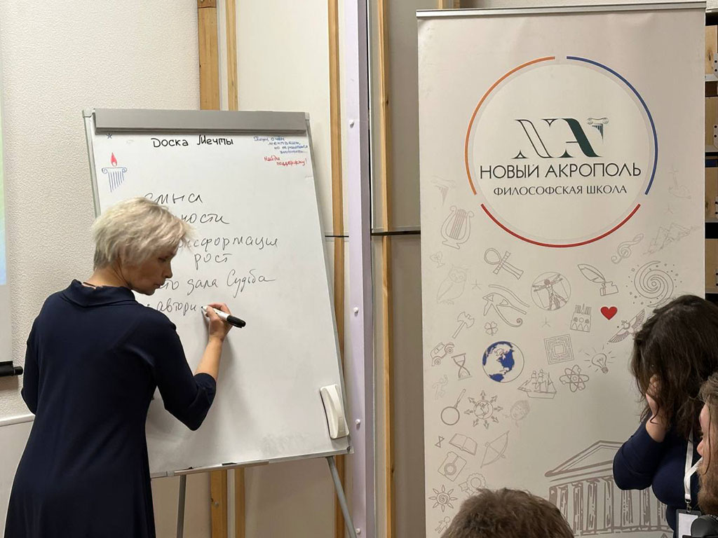 El núcleo filosófico de la velada fue una breve conferencia de Ekaterina Davletshina, directora de la Nueva Acrópolis en el Parque de la Victoria. Recurrió a las ideas de los estoicos sobre cómo el propósito del ser humano es convertirse en un Ser Humano, lo cual se expresa en el desarrollo de la areté —las virtudes humanas—.