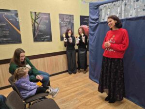 La representación tuvo lugar en un espacio escolar durante las fiestas de invierno. El formato íntimo creó una atmósfera de cercanía, en la que el cuento se convirtió en un punto de encuentro entre niños, padres y la comunidad de voluntarios.