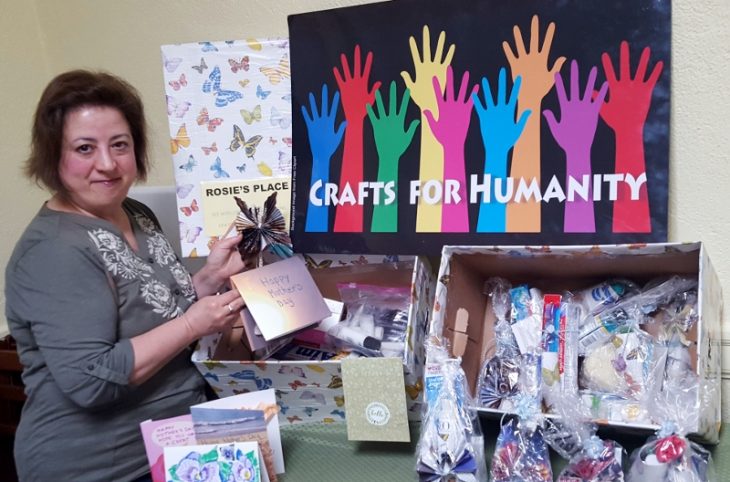 Donación de tarjetas y regalos hechos por voluntarios para un refugio de mujeres en el Día de la madre (Boston, EE. UU.)